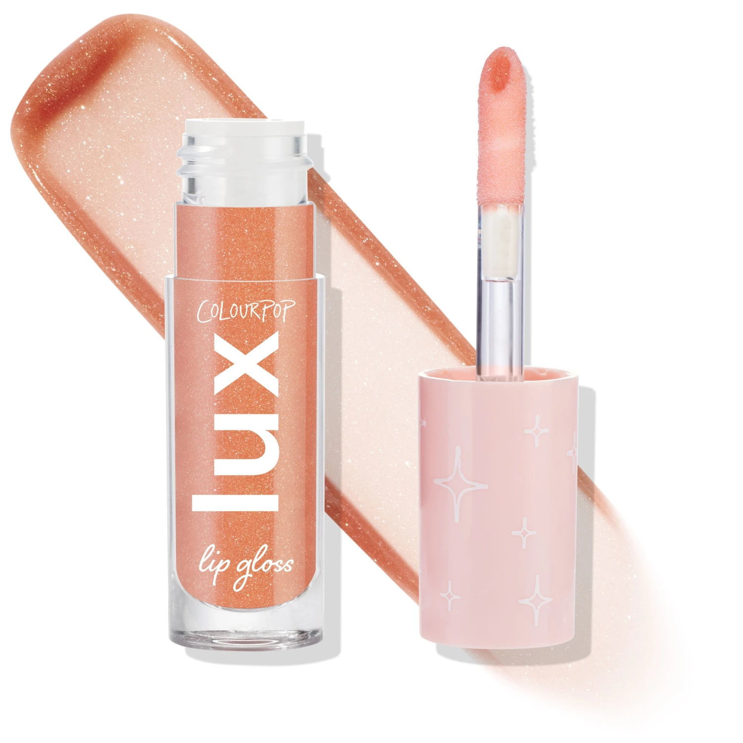 midtone nudey peach gloss with gold flecks